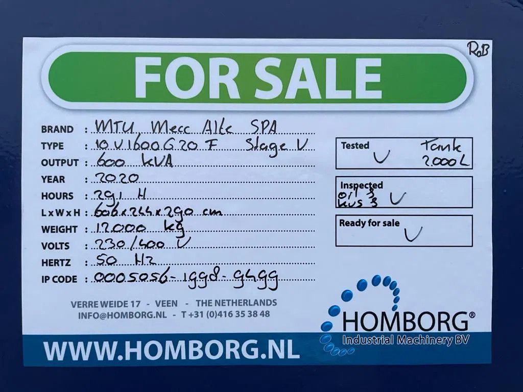 Motor Merk : MTU Type : 10V1600G20F Motor nr : 16601004508 Vermogen : 448 kW / 610 PK Koeling : Watergekoeld Cilinders : 10 Toerental : 1.500 rpm