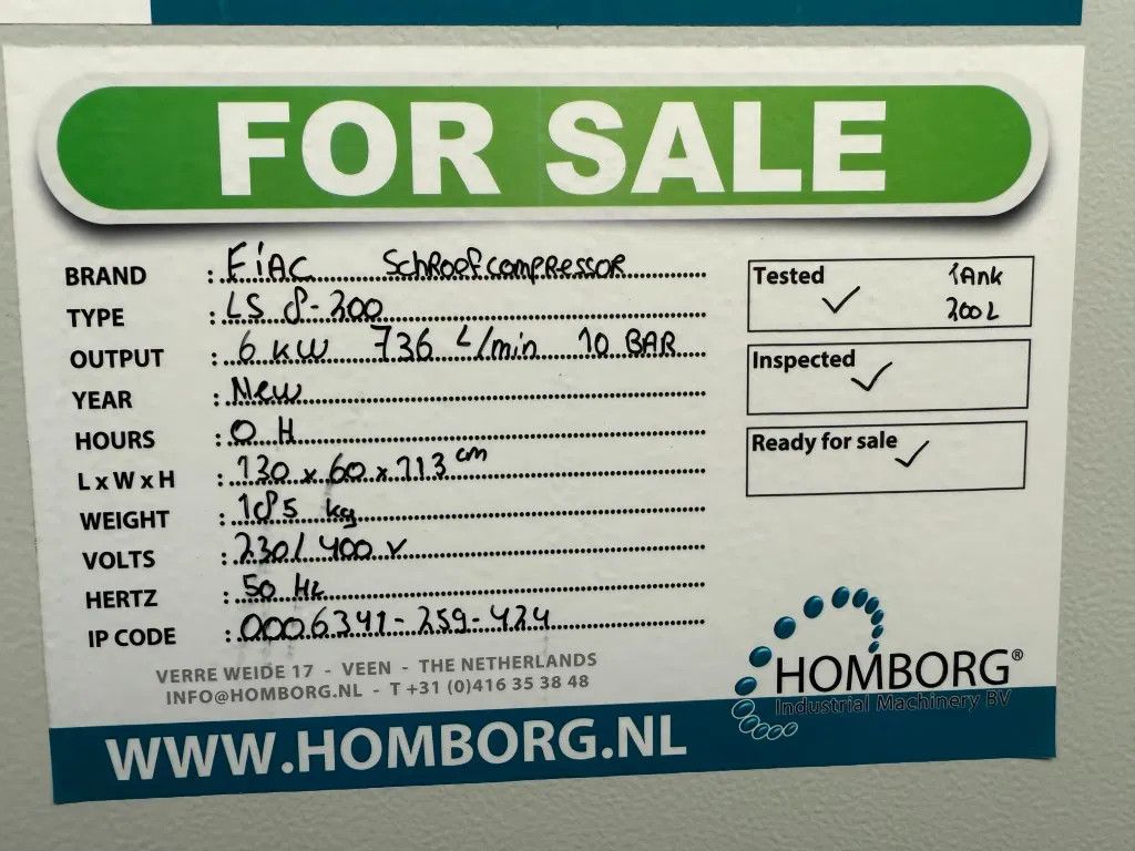 Fiac LS 8 - 200 Elektrische Schroefcompressor 6 kW 736 L / min 10 Bar New ! Overstock !