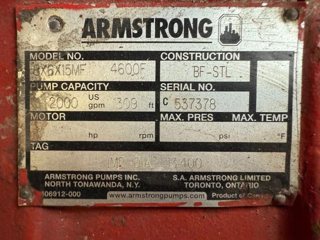 Pomp Merk : Armstrong Model : 8X6X15MF Serie nr. : 537378 Vermogen : max. 454 m3 / h Maximale druk : circa 11 Bar Toerental : 2.350 rpm