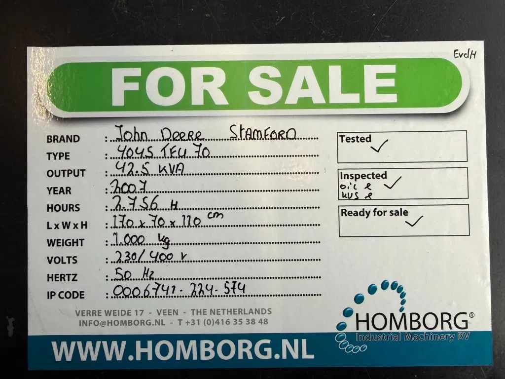 John Deere 4045 TFU 70 Stamford 42.5 kVA Marine generatorset