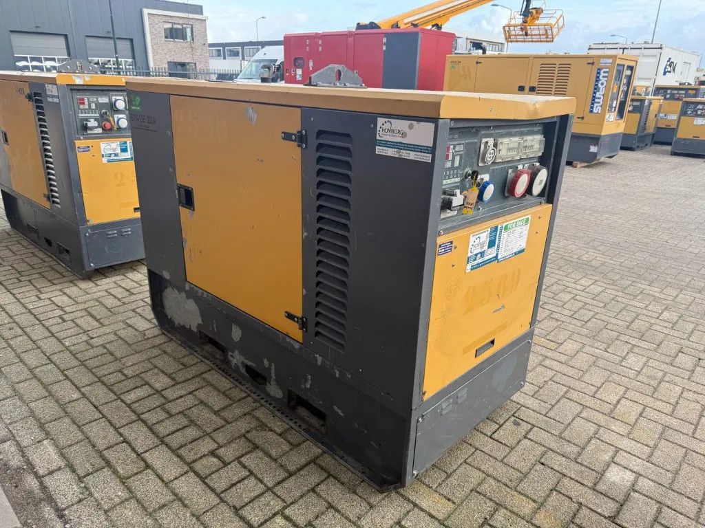 Met: - Silent omkasting - Interne dieseltank met een inhoud van circa 110 liter - Lekbak - Diverse stekkeraansluitingen 1 x 63 Ampere 400 Volt 1 x 32 Ampere 400 Volt 2 x 16 Ampere 230 Volt - Met inrijkokers ten behoeve van heftrucklepels - Turbo - Motorbeveiliging - Digitaal bedieningspaneel - Met intern uitlaat systeem