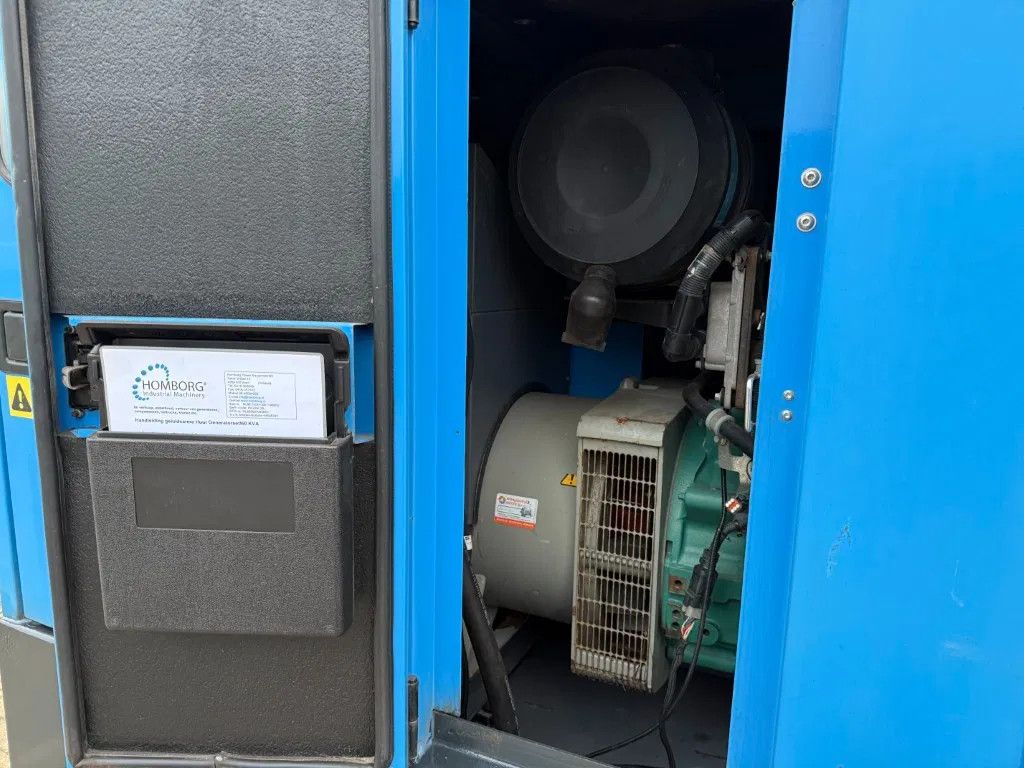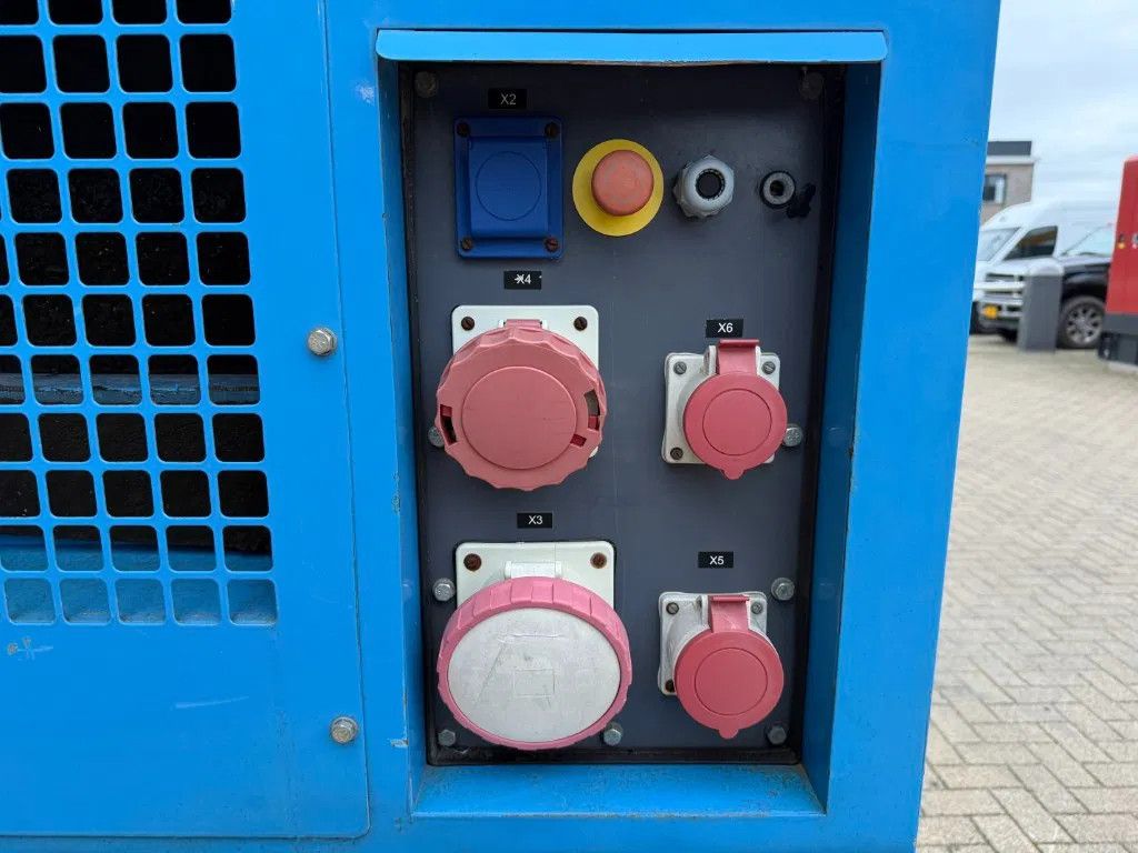 Met: - 250 Ampere Power breaker - Motorverwarming - Silent omkasting - Interne dieseltank met een inhoud van circa - Lekbak - Automatische start en handmatige start - Diverse stekkeraansluitingen 1 x 125 Ampere 400 Volt 1 x 63 Ampere 400 Volt 1 x 32 Ampere 400 Volt 1 x 16 Ampere 400 Volt 1 x Schucko 230 Volt - Met inrijkokers ten behoeve van heftrucklepels - Externe brandstofaansluitingen - Carter aftap pomp - Massaschakelaar accu - Intercooler - Turbo - Digitaal bedieningspaneel - Met intern uitlaat systeem