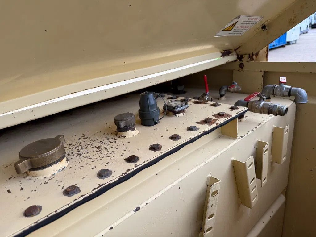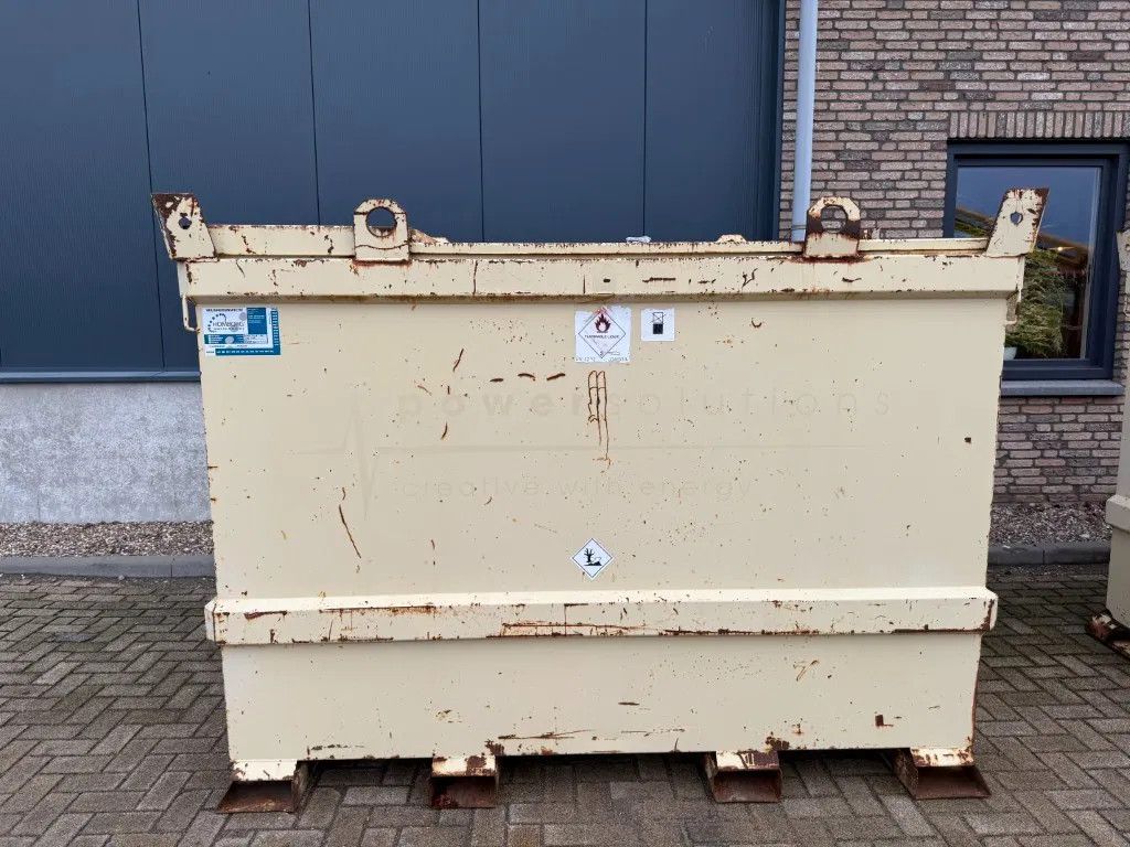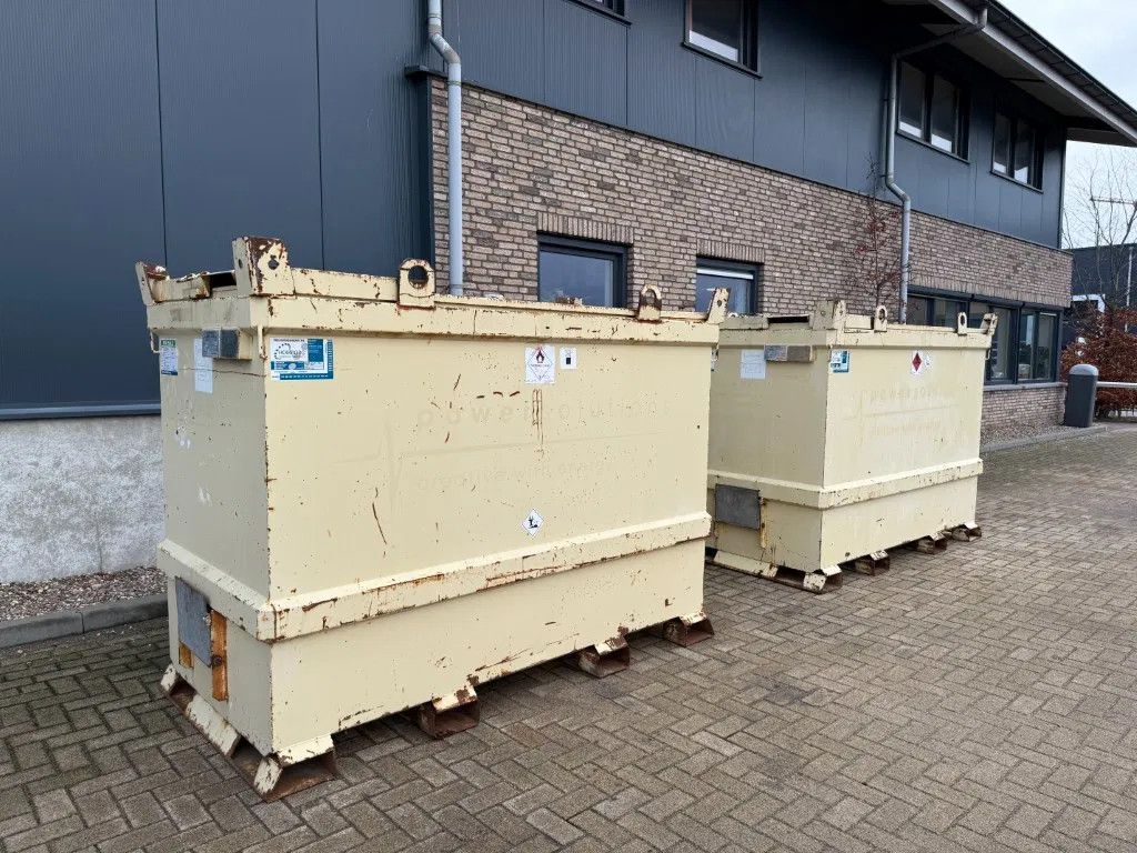 Compleet uitgevoerd met : - Aansluiting tbv generatorset of andere stationaire motor - Inrijkokers t.b.v. heftrucklepels - Niveau meter
