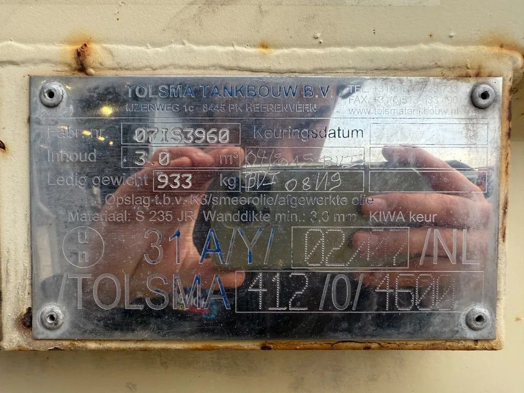 Merk : Tolsma Fabr nr : 07IS3960 Inhoud : 3.000 liter Bouwjaar : 2007 Afmetingen : 247 x 125 x 184 ( L x B x H in cm ) Gewicht : 933 kg