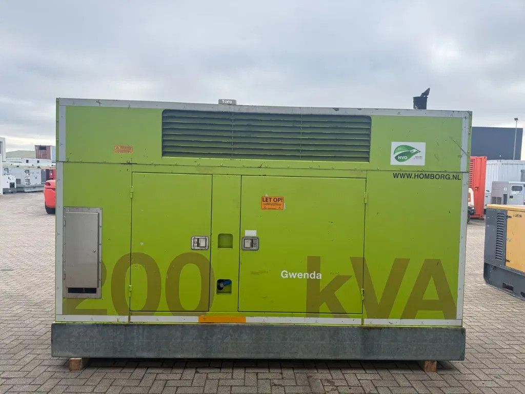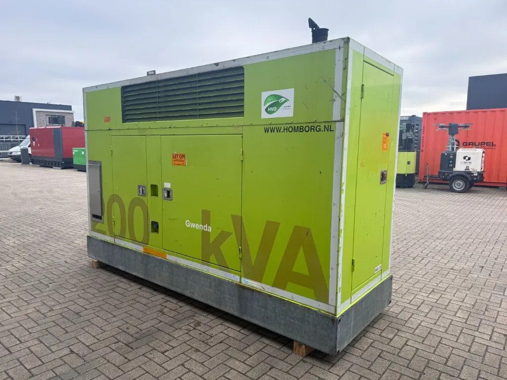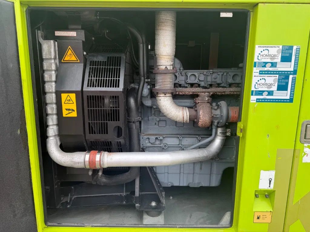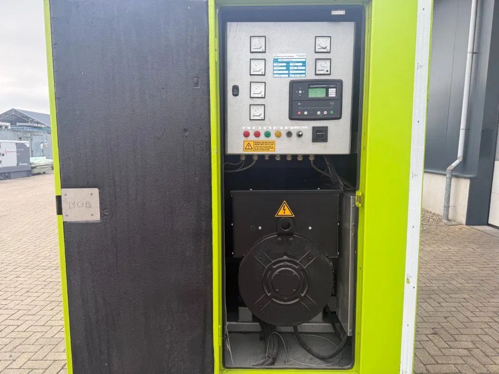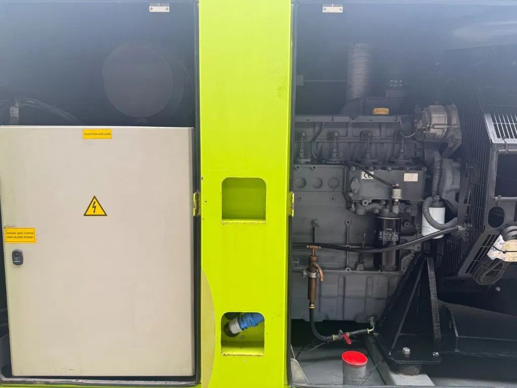 Met: - ... Ampere breaker - Supersilent omkasting - Interne dieseltank met een inhoud van circa 800 liter - Lekbak - Automatische start en handmatige start - Diverse stekkeraansluitingen 1 x 125 Ampere 400 Volt 2 x 63 Ampere 400 Volt 1 x 32 Ampere 400 volt - Powerlock aansluitingen - Externe brandstofaansluitingen - Carter aftap pomp - Intercooler - Turbo - Motorbeveiliging - Acculader - Digitaal Deep Sea Electronics DSE 7310 bedieningspaneel - Met intern uitlaat systeem
