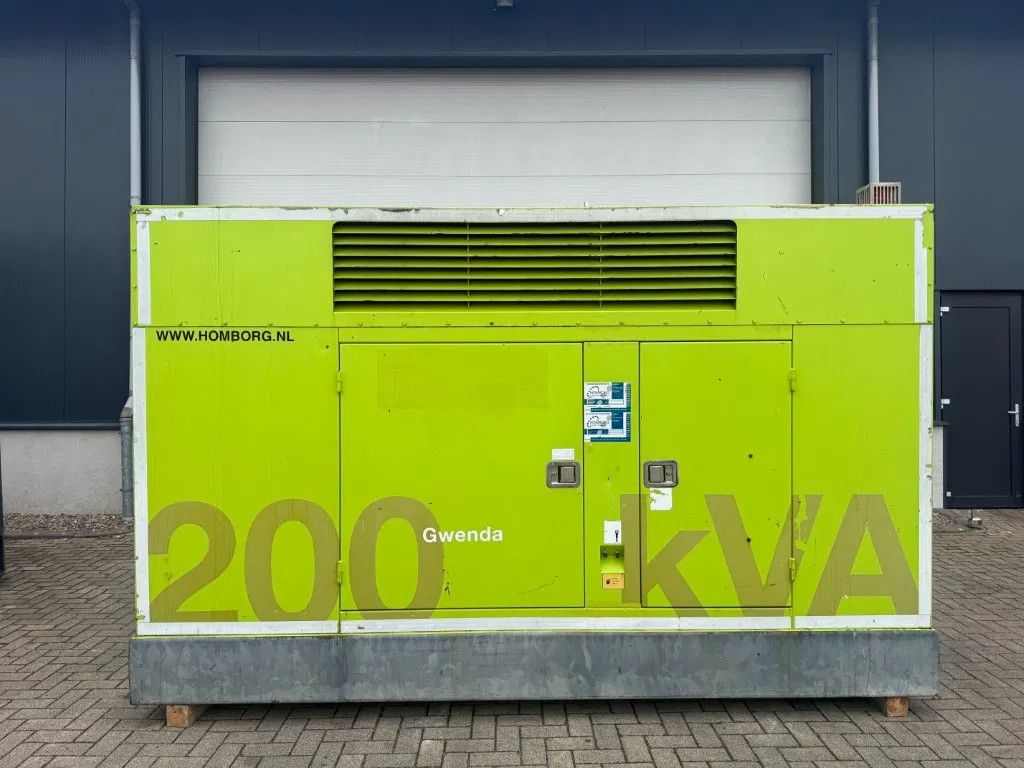 Generator: Merk : Leroy Somer Vermogen : 200 kVA continue, 223 kVA standby Ampère : 288 Amp continue, 321 Amp standby Fasen : 3 Cos phi : 0,8 Voltage : 230/ 400 Volt Frequentie : 50 Hz