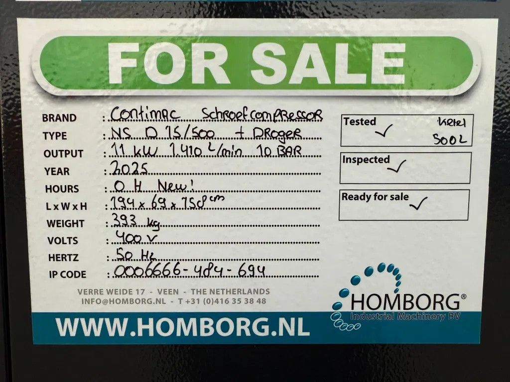 Contimac NS D15/500 11 kW 1410 L / min 10 Bar Schroefcompressor met Droger