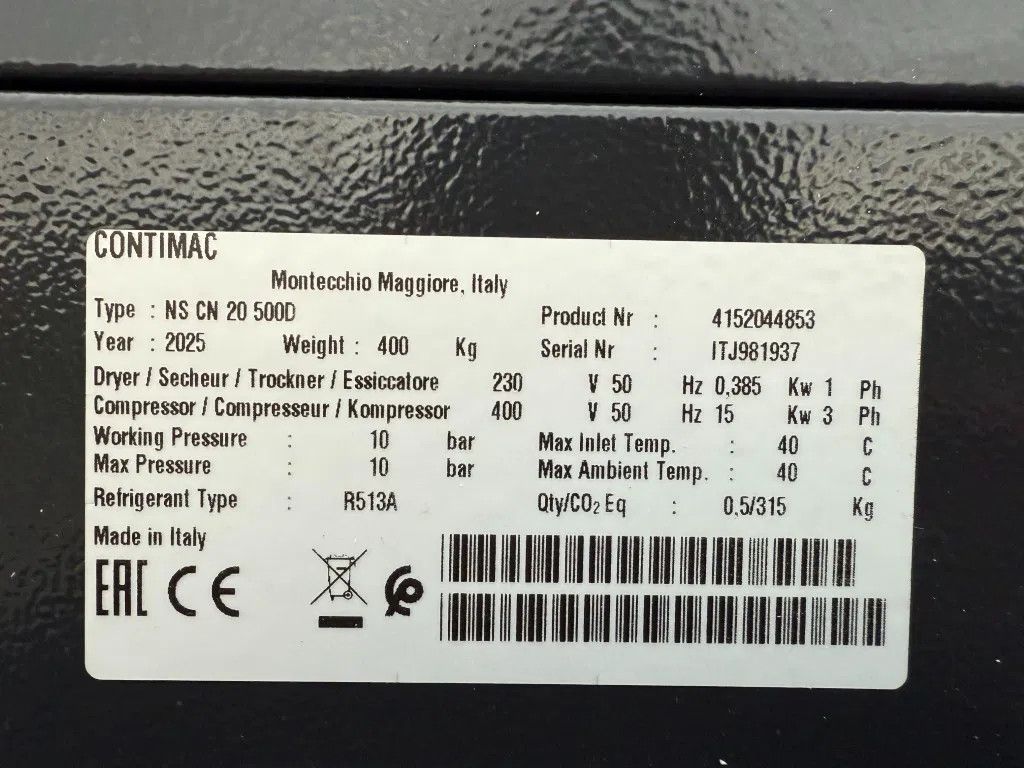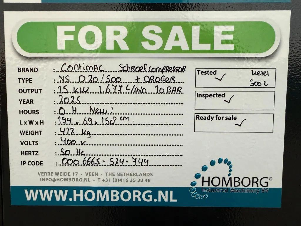 Contimac NS D20/500 15 kW 1677 L / min 10 Bar Schroefcompressor met Droger