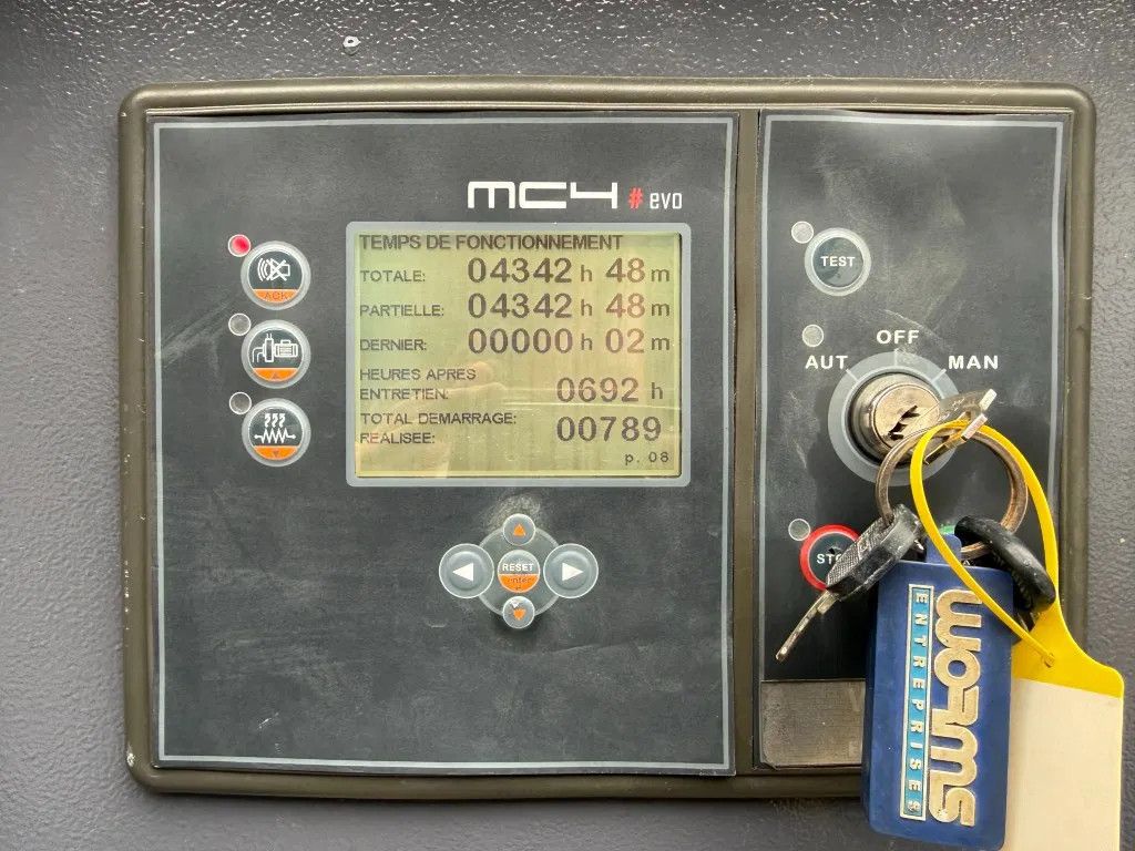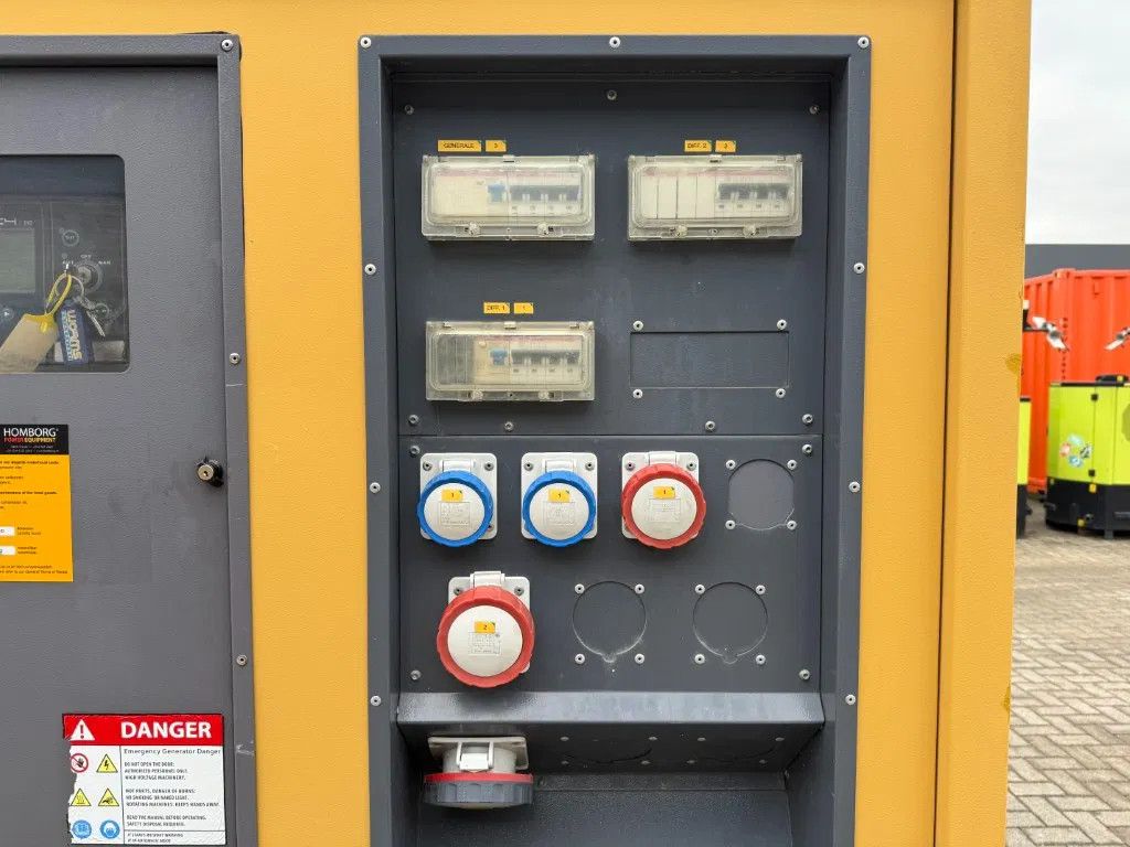 Met: - 400 Ampere Power breaker - Supersilent omkasting - Interne dieseltank met een inhoud van circa 450 liter - Lekbak - Automatische start en handmatige start - Diverse stekkeraansluitingen 1 x 63 Ampere 400 Volt 1 x 32 Ampere 400 Volt 1 x 16 Ampere 400 Volt 2 x 16 Ampere 230 Volt - Met inrijkokers ten behoeve van heftrucklepels - Externe brandstofaansluitingen - Carter aftap pomp - Intercooler - Turbo - Motorbeveiliging - Digitaal bedieningspaneel - Met intern uitlaat systeem